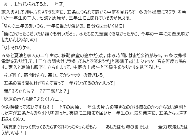 天内事件あってもすぐるがいるあいだはさとるはわりと健全だったよ 無下限強化を楽しんでたっぽいし 着々と最強へ近づくのを楽しんでた節がありそう