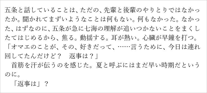 でもさ~これは57の話なんだけどさ~5が夏を失ったのは「殺した」のに対して7が灰を失ったのは「救えなかった」なの、5と7は分かりあえない感じがして最高だよね