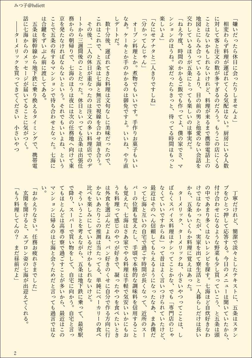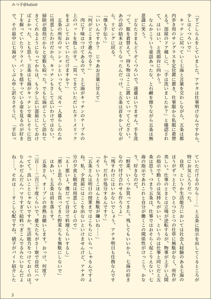 受けに料理家事させるのわりと地雷なんだけどナナチャンはまじでただ好きでやってるからな…というジレンマ でも読んでる方もわかるっしょ!という開き直りの姿勢で書いています わかって これは性別役割分担の投影ではないのです