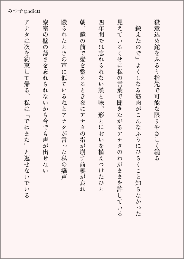 でも私の好きな枡野浩一も間武もけっこうむちゃくちゃな文字数でよんでるんですよね 三十一文字が一番うつくしいとは思うがリズムが良けりゃ現代短歌はいいような気がする