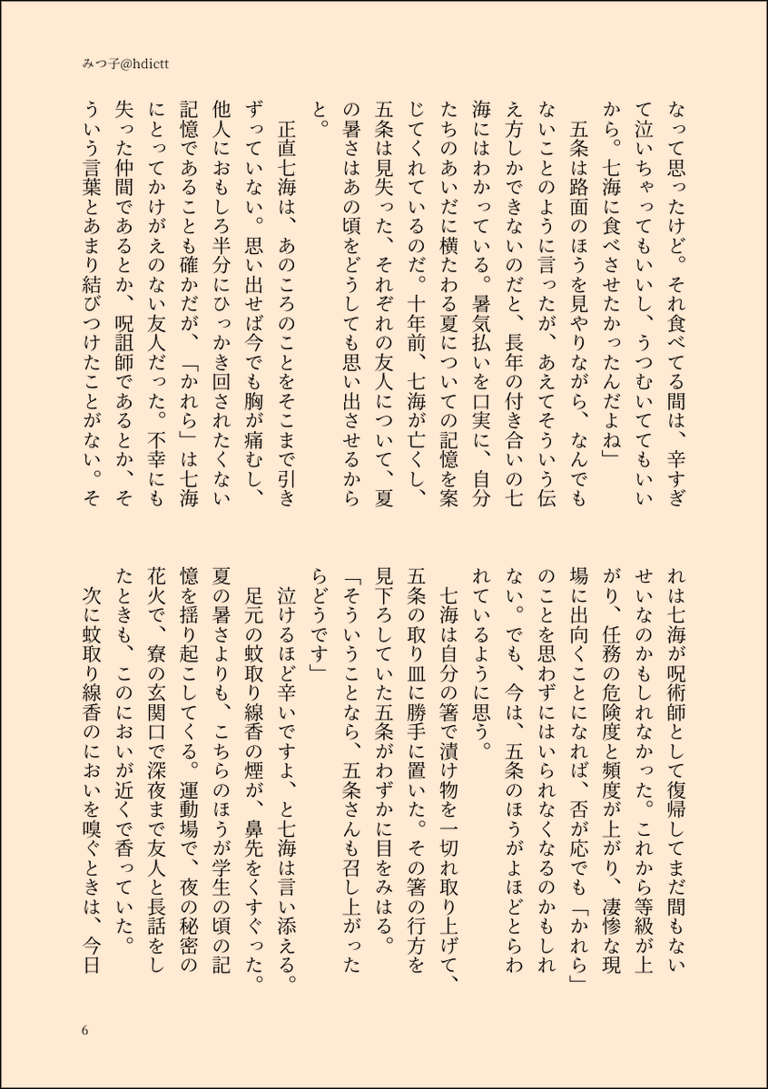 推しカプの夕涼み会を考えずにはいられない女だからさ〜〜57は路地裏の個人居酒屋の軒先の席でナナチャンがビール、ゴがレモネードとおつまみいっぱい頼んでぐだぐだ喋ってほしい 「蚊取り線香の匂いって夏って感じしますよね」「僕蚊に刺されたことな〜い」「クソ術式」とか言っててほしい 3年以上前 (2022.7.1) twilog