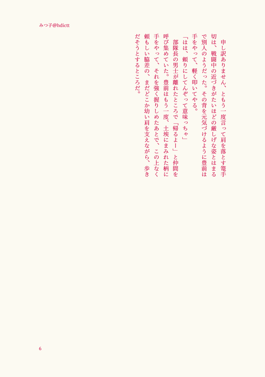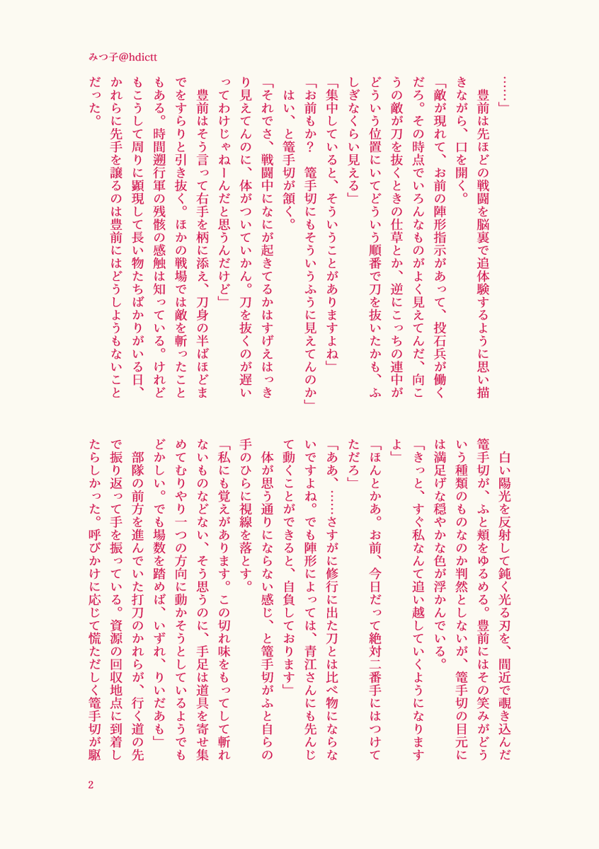 あとさき【ぶぜこて】2/2 https://www.pixiv.net/novel/show.php?id=... 馬なんか乗ってられっか!ていうバチバチに戦闘力の高いぶぜこてを推す 5年以上前 (2020.2.29) twilog