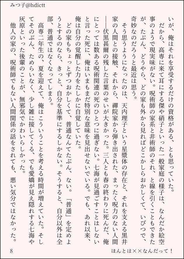 自分の限界を認めるのってほんとーーーーーに屈辱的だし勇気がいる けどじゃあ伊が逃げずに術師になってたらたぶん早々死んでたはずで 生かすために逃げ道を作ってあげた五はほんとに出来た人間だよちくしょ〜〜〜 2年以上前 (2023.5.22) twilog
