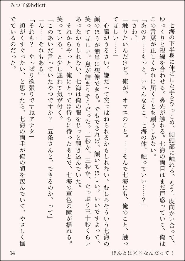 若ナナチャンが、ゴのグサグサグサ事件(まろやか表現)を、アレで強くなれたとして周りの大人が喜ぶのクソじゃないですか!って憤ってほしいんだな〜五七はそういう愛なんだな〜 そしてゲはもう曇りつつあるので、ゴに対してちょっと態度が変わっているといい