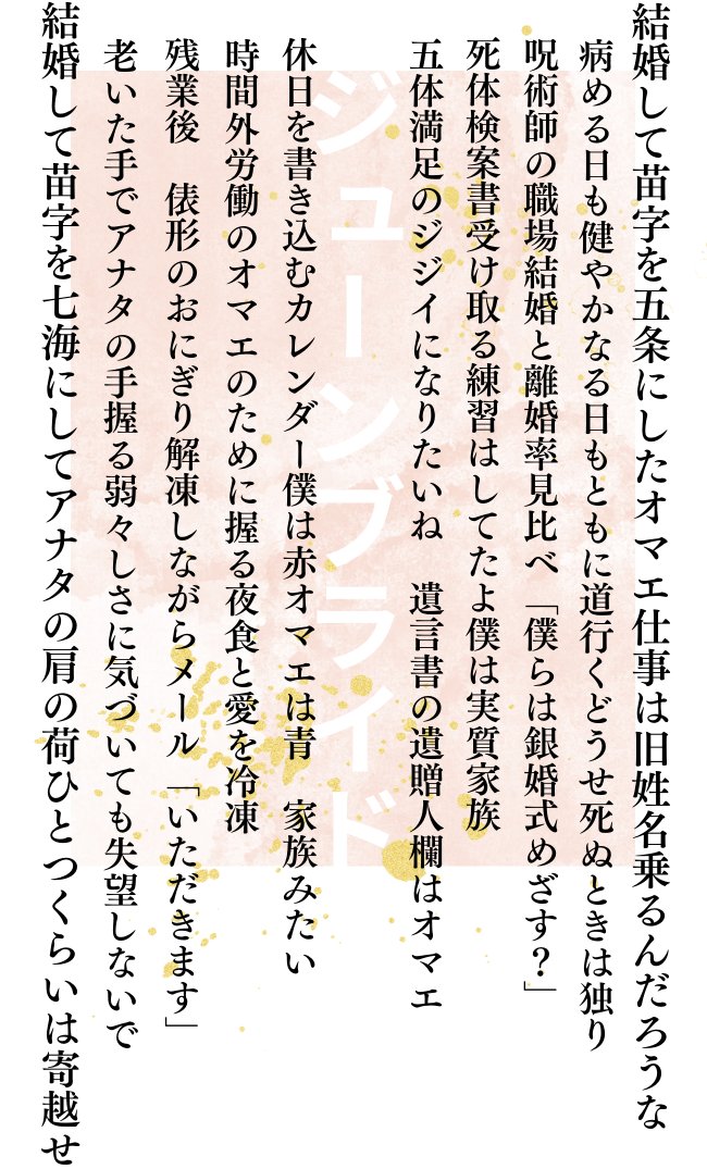 せっかくのジュンブラフェスだから五七の結婚短歌もなんかやりて〜ってなってきた 私は結婚しない推しカプが好きですが、結婚について考える推しカプはもっと好き