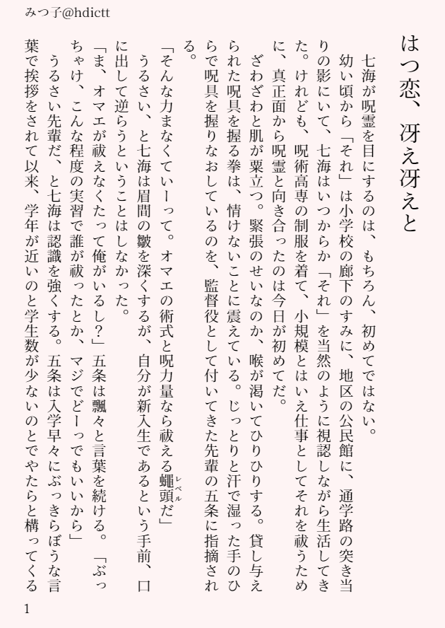 #文体練習 練習問題①文はうきうきと 問1.一段落~一ページで、声に出して読むための語りの文を書いてみよう。オノマトペ、頭韻、繰り返し表現、リズムの効果、造語や自作の名称、方言など、ひびきとして効果があるものは何でも好きに使っていい――ただし脚韻や韻律は使用不可。 でした!脚韻って何? 2年以上前 (2023.7.19) twilog