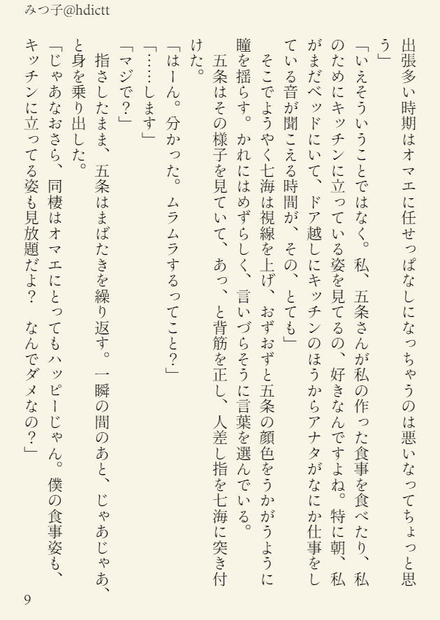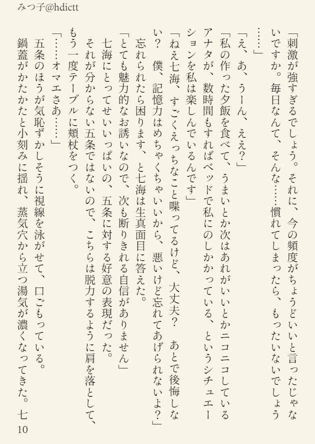 渋谷直前1週間本はななみ班もっとワチャワチャしてくれ!!!の気持ちも込めたメくんがナイスアシストする五七の穏やか日常背徳セッ本なのでよろしくお願いします メくんの査定中のななみや先生やってるさとるをいっぱい書いたんだ読んでほしい!!! (ツイート埋め込み処理中...)Twitterで見る 2年以上前 (2023.9.8) twilog