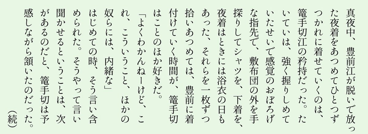 【ぶぜこて】まとめ1 | みつ子 #pixiv https://www.pixiv.net/novel/show.php?id=... ぶぜんごがこてぎりの梵字なぞる事後話とか、軽装ありがとうとかのまとめです