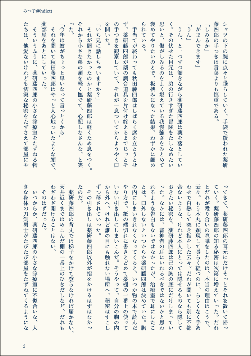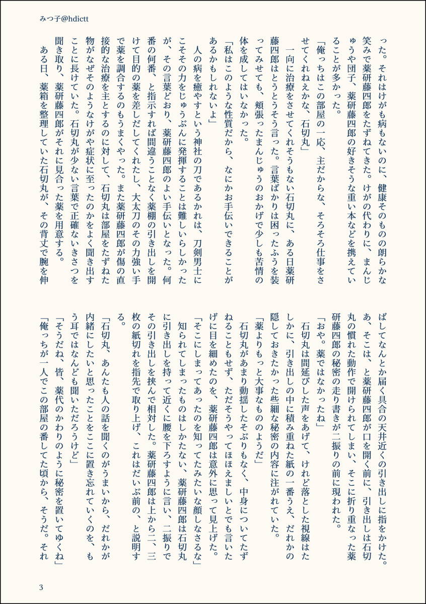 二振りのやさしい恋を想像しながら読んでいただけたようで嬉しいです。レベルが上がったぶぜんくんとこてぎりはどんなやりとりするのか…私も気になります…!コメント何度も読み返しました、本当にありがとうございます! 5年以上前 (2020.5.14) twilog