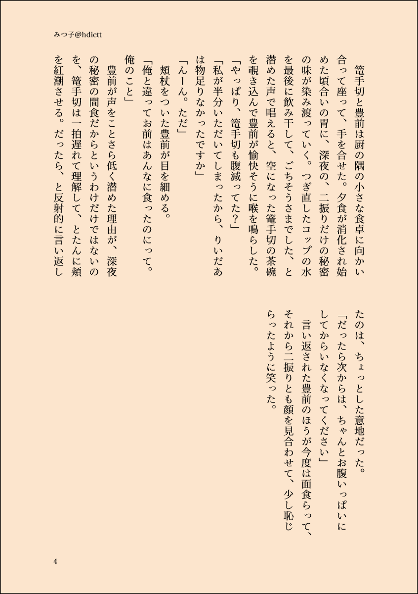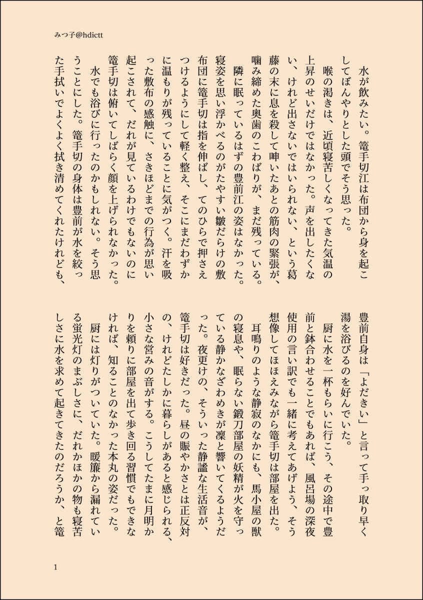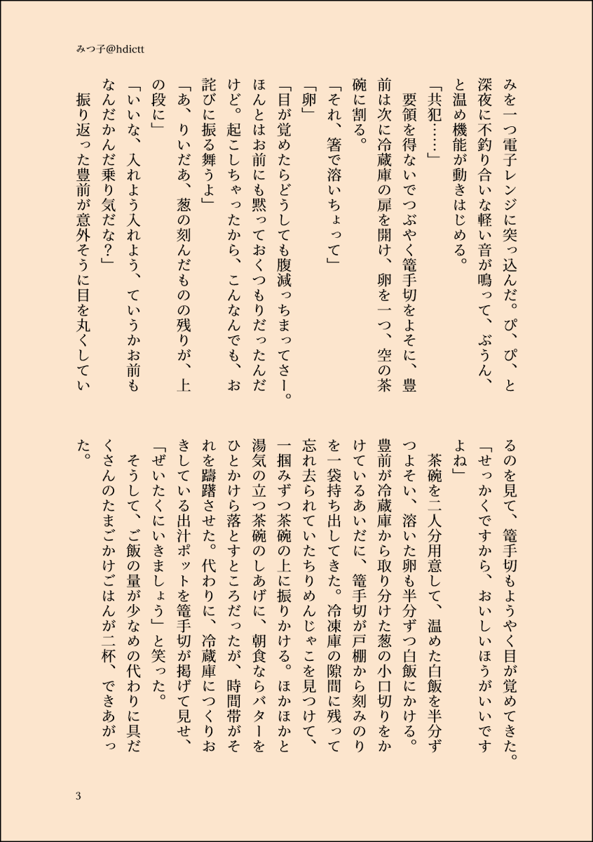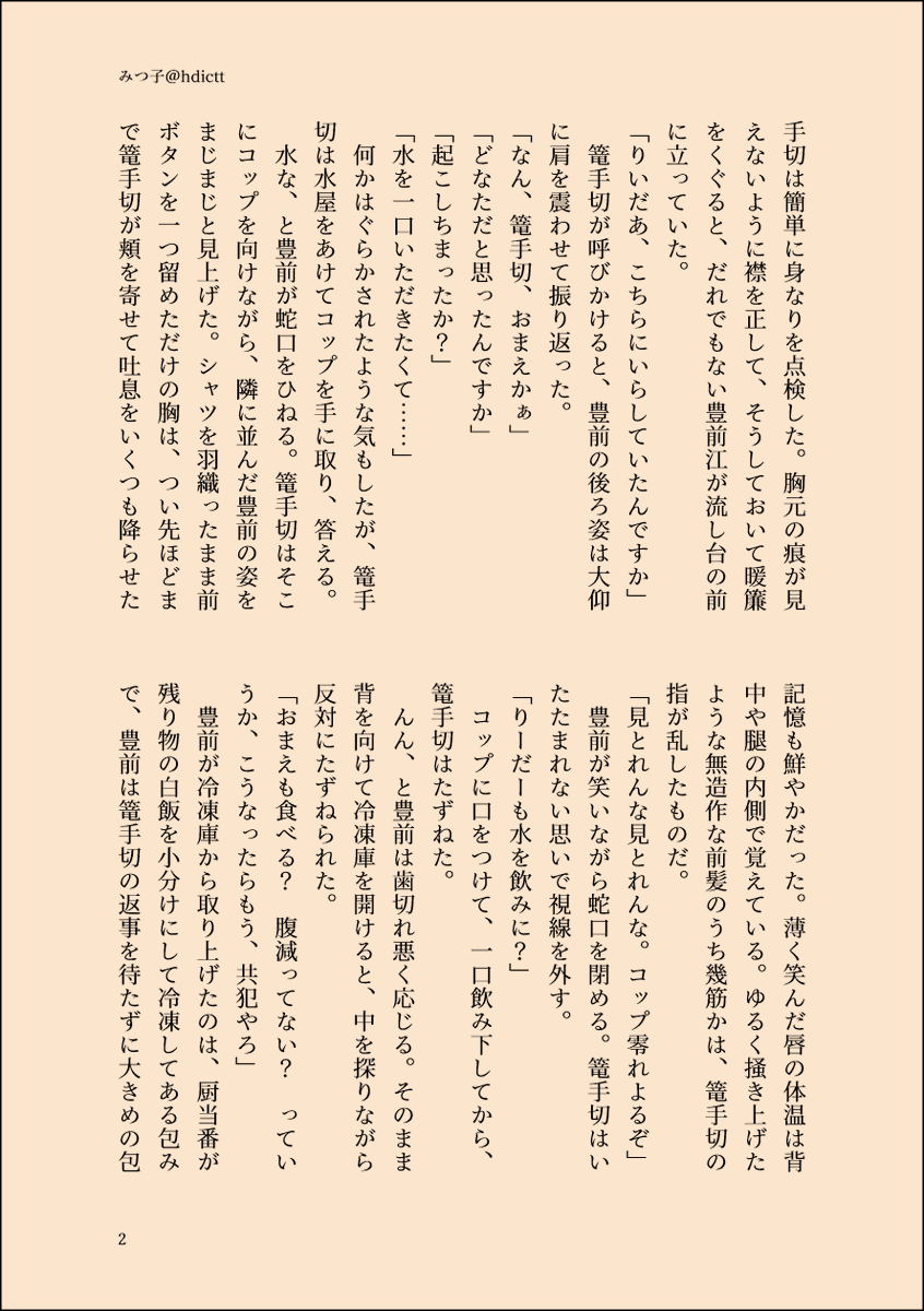 れっすんシーン、ぶぜこてのことなので慣れない中でもなにか楽しみを見つけながられっすんしていたんだろうな〜と思います。続きをと言っていただけるの本当に嬉しいです。こうなるともっとしっかりイチャイチャするLvカンストぶぜこても見たくなりますよね…!💪感想ありがとうございましたー! 5年以上前 (2020.5.19) twilog