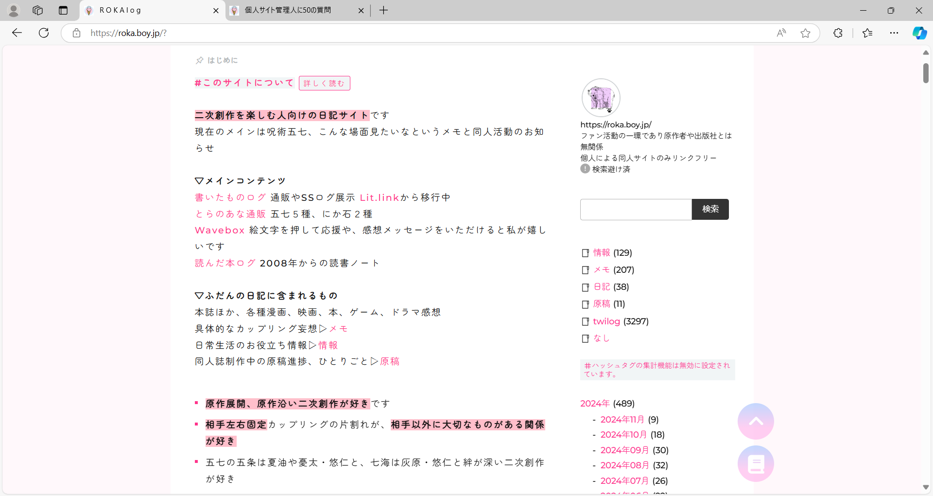 個人サイト管理人に50の質問