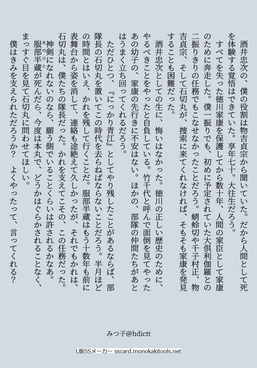 これは酒井忠次として死の間際ににっかり青江が思ったこと!
